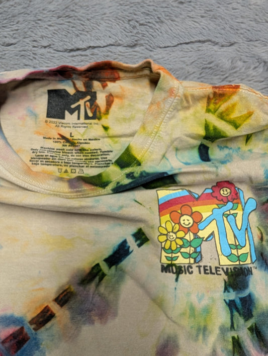 MTV Floral Earth Traditional Bullseye Rainbow Tie Dye T-Shirt