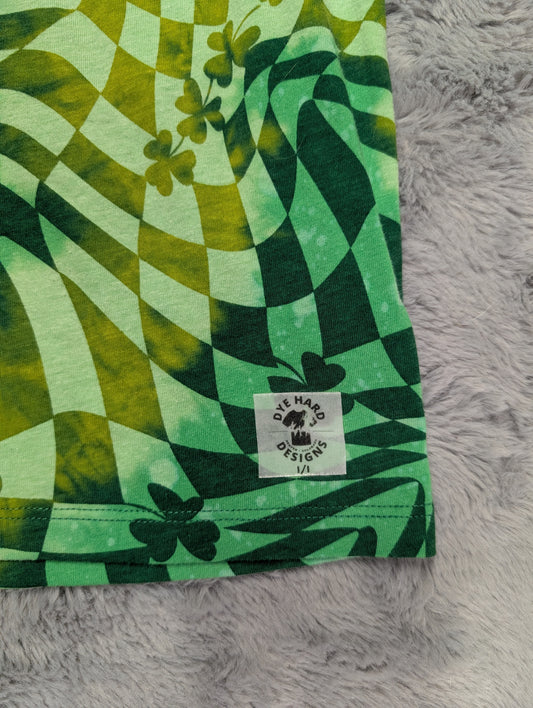 St. Patrick's Day "I Feel Lucky" Checkerboarded Reverse Tie-Dye T-Shirt